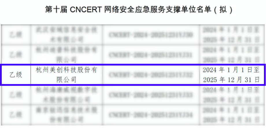 此次再次成功入選CNCERT網絡安全應急服務支撐單位,是主管部門及專項技術評選部門對美創科技安全應急能力的有力肯定。當前, 數據已成為數字經濟發展的核心要素引擎, 數據安全重要性不斷提升,美創科技將始終牢記使命、勇于擔當,不斷強化數據安全保障能力,為推動我國網絡、數據安全事業的持續健康發展做出更大的貢獻。