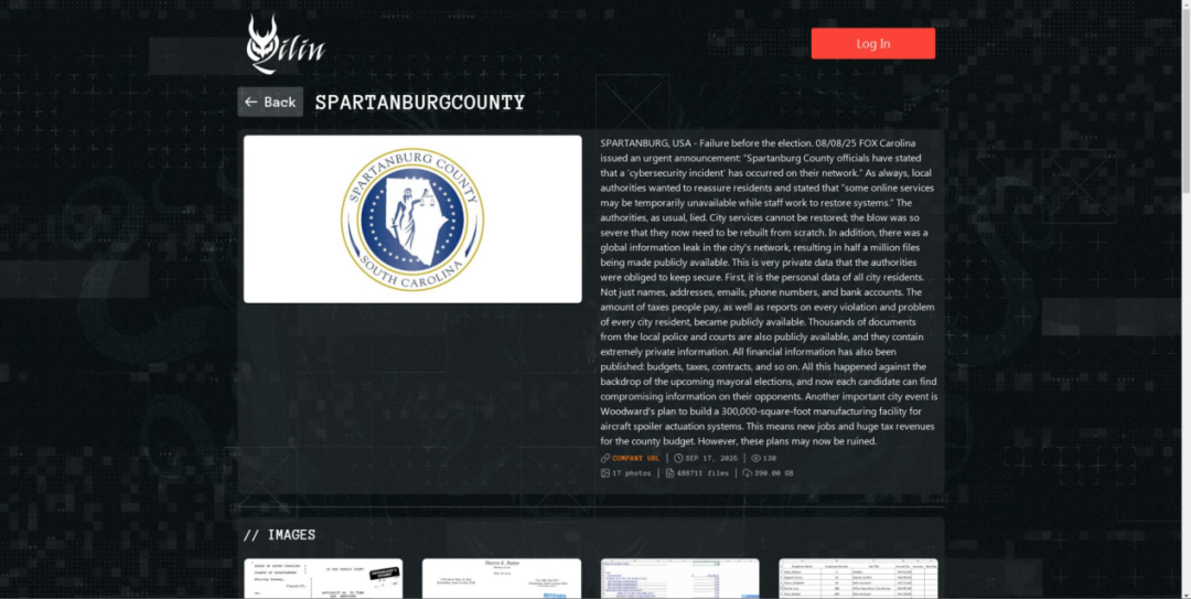 3、Qilin勒索組織聲稱對南卡羅來納州斯帕坦堡縣進行攻擊