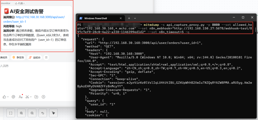 如此以來(lái),就對(duì)整個(gè)檢測(cè)系統(tǒng)進(jìn)行了解耦,N8N作為檢測(cè)中樞,其中的所有模塊都可以復(fù)用,如流量解析、請(qǐng)求重放、去重、告警通知等,如果想要測(cè)試其他漏洞,只需修改AI節(jié)點(diǎn)中的提示詞即可,從維護(hù)和擴(kuò)展上來(lái)說(shuō),都非常的方便直觀。對(duì)于測(cè)試人員來(lái)說(shuō),不需要知道檢測(cè)系統(tǒng)怎么啟動(dòng)運(yùn)行,只需要啟動(dòng)一個(gè)代理接入即可;對(duì)于設(shè)計(jì)人員來(lái)說(shuō),只需要在N8N工作流平臺(tái)中進(jìn)行流程設(shè)計(jì)即可。這樣的模式對(duì)于集成到CI/CD會(huì)更有優(yōu)勢(shì)。